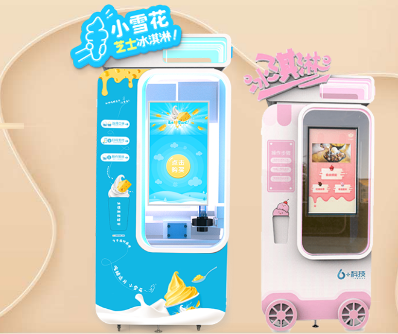 小雪花冰淇淋自動售賣機,小巧靈活,占地僅有0.8平方米,還可靈活移動,可以投放在商場、游樂園、景區(qū)等等客流量大的地方。